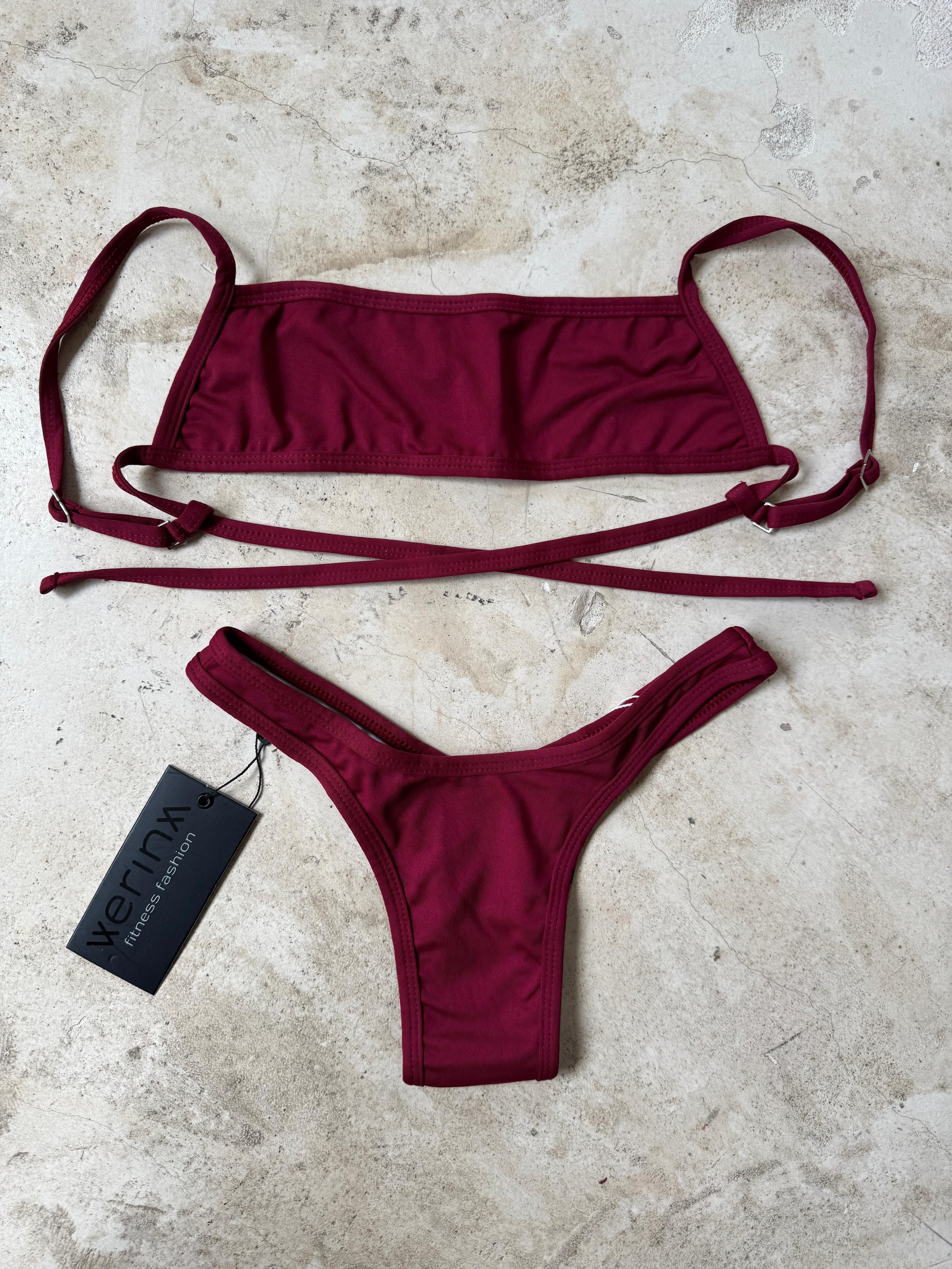 Hermoso bikini de 2 piezas, con tiras para amarres en top para un ajuste perfecto, y bottom con formato tanga alta (asa delta).