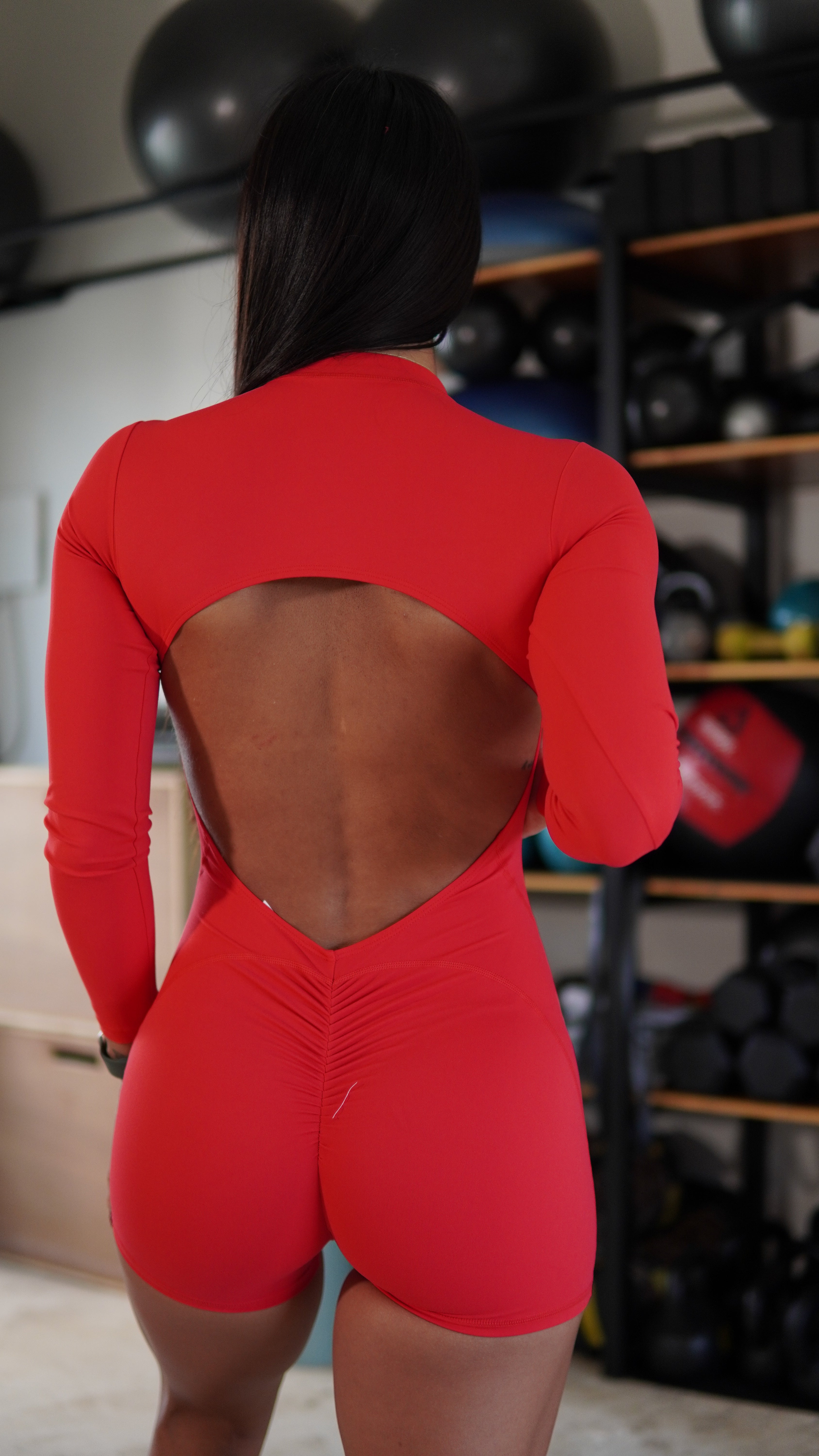 Hermoso entero corte con escote en espalda, fruncido en los glúteos.