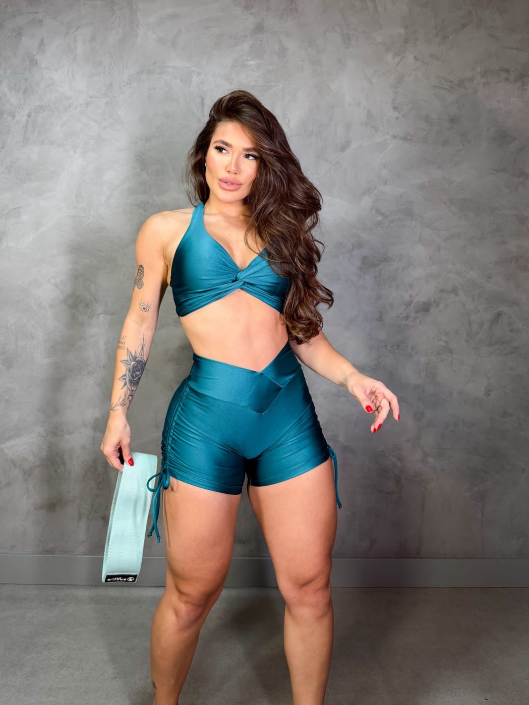 Hermoso conjunto de short con y top de tela supplex brasileña, elástica.