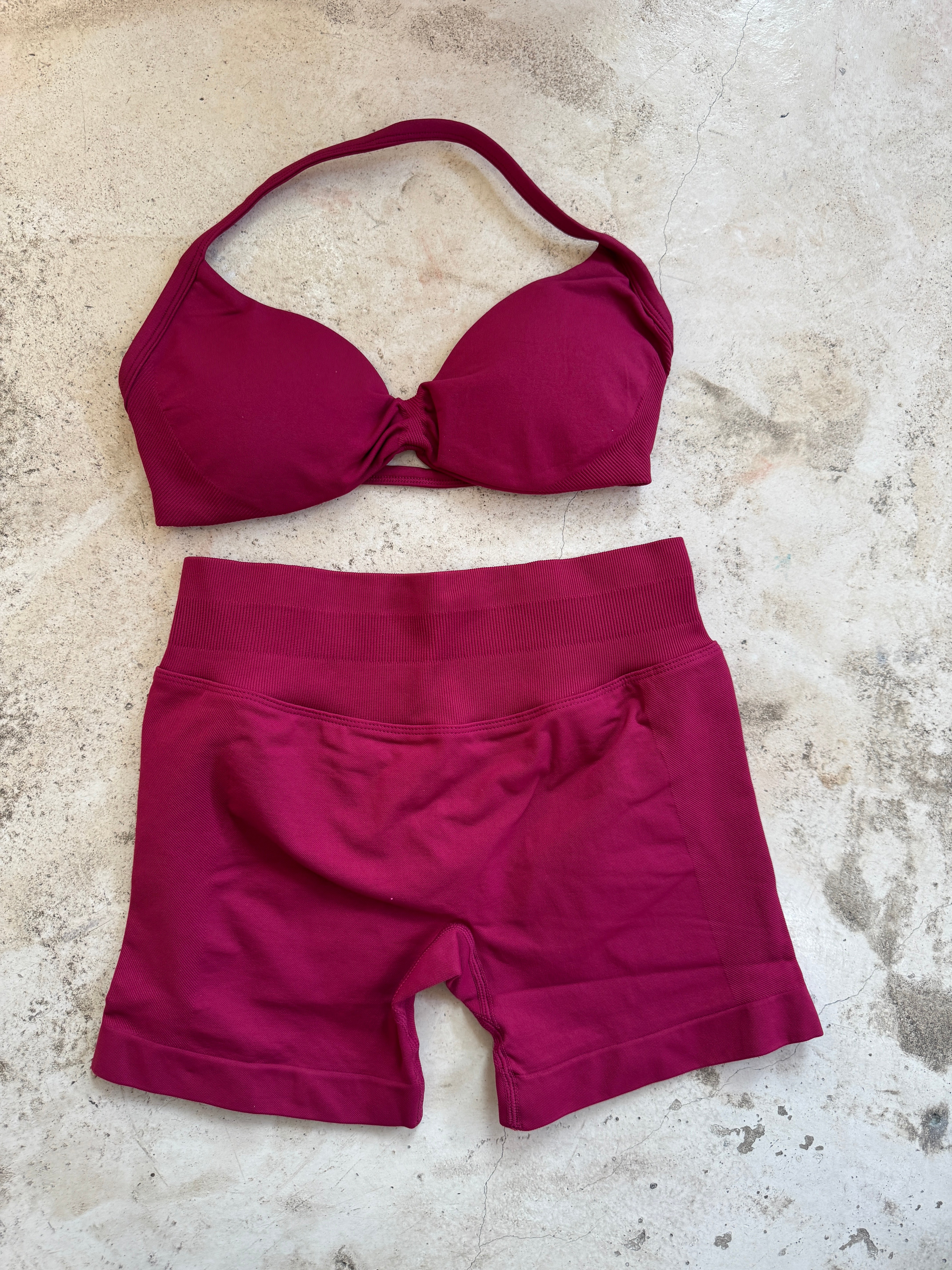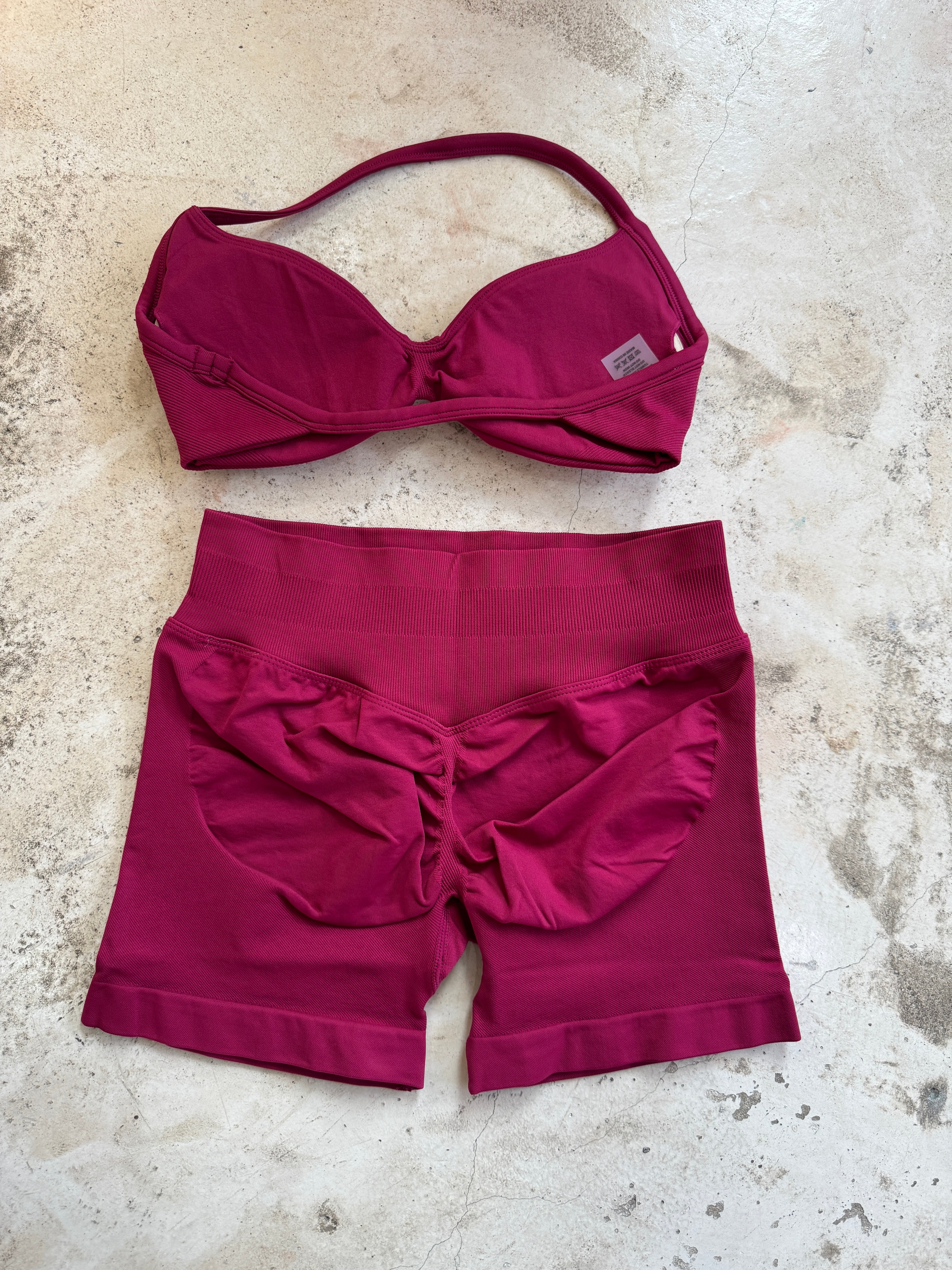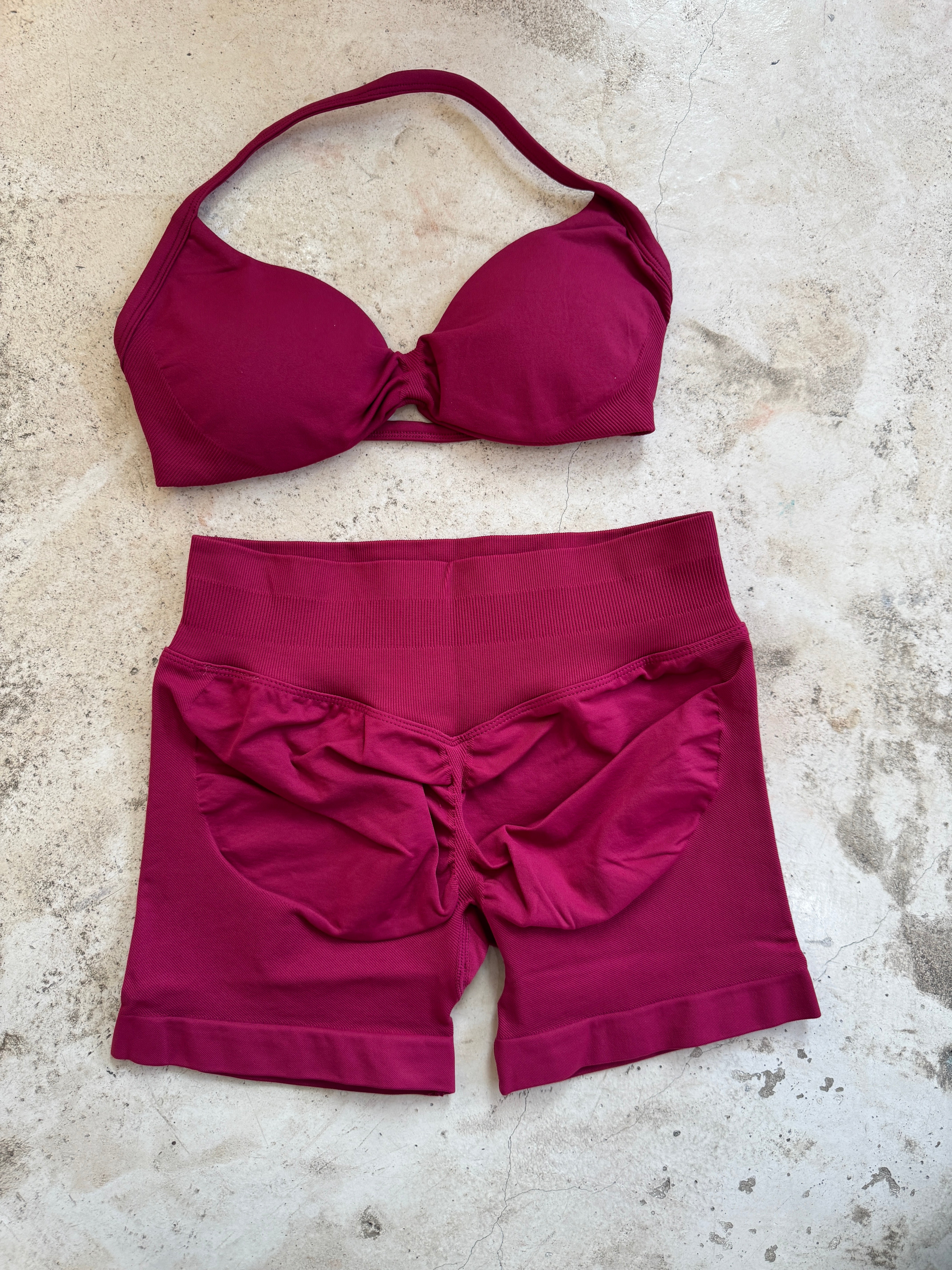 Set de short con plisado en glúteo y top con copas removibles.